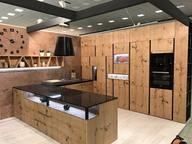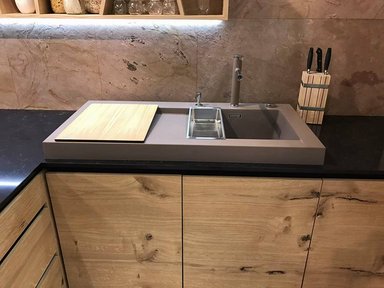 Materiál Lapitec NERO ANTRACITE DUNE, rezanie CNC píla, spracovanie hrán profilovanie leštiaci automat, výrez CNC pre drez s montážou pod pracovnú dosku, varná platňa zapustená do roviny s pracovnou doskou.